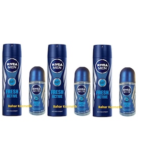 Nivea Fresh Actıve Sprey Erkek Deodorant + Roll-On 3 er Adet