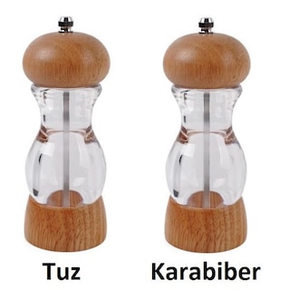 2li Set Ahşap Kapaklı Akrilik Tuz Karabiber Öğütücü Değirmeni