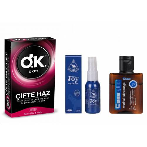 3LÜ SET *JOY GECİKTİRİCİ SPREY + OKEY PREZERVATİF ÇİFTE HAZ + CABS JEL + KARGOSUZ