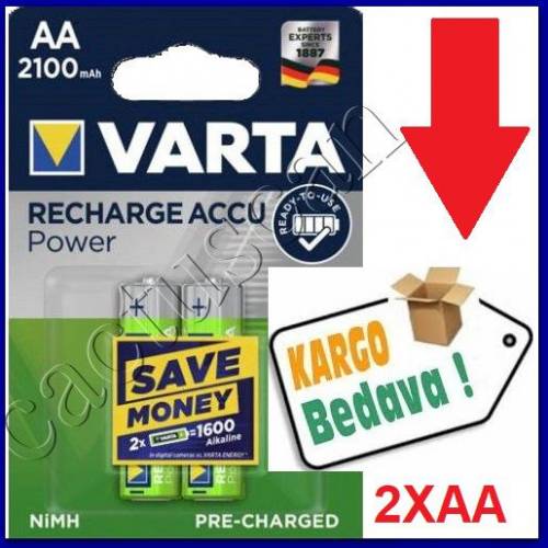 2’Lİ PAKET VARTA 2100mAh Ni-Mh READY TO USE AA ŞARJLI KALEM PİL KARGO BEDAVA