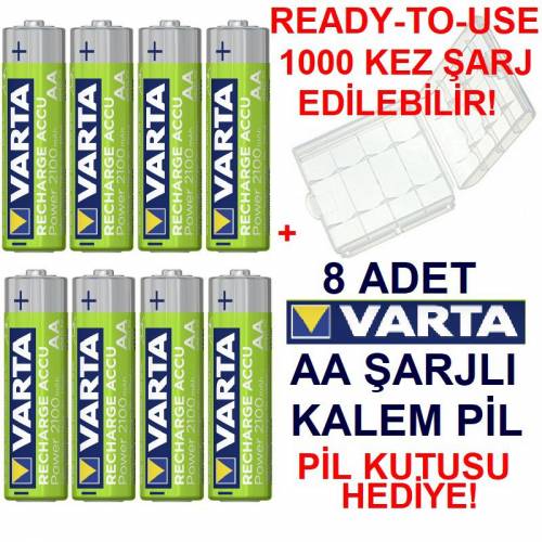 8 ADET VARTA 2100mAh Ni-Mh READY TO USE AA ŞARJLI KALEM PİL+ pil saklama kutusu HEDİYE KARGO BEDAVA