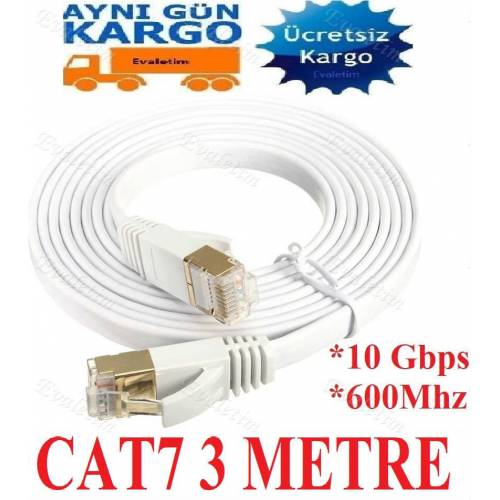 CAT7 ETHERNET İNTERNET KABLOSU 3 METRE 4257p 3M 10Gbps 600Mhz LAN MODEM RJ45 UÇLARI ÇAKILI JACK ADSL