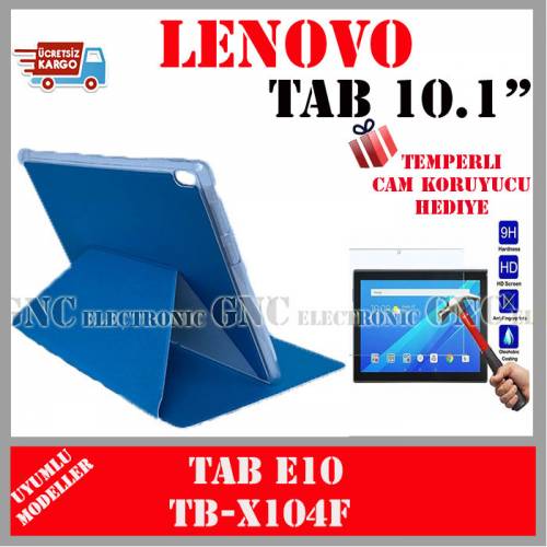 LENOVO Tab E10 TB-X104F 10.1 inç Kılıf Silikon Cover Kapaklı Standlı | Temperli Cam Hediye