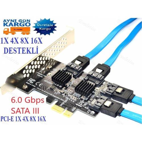 PCI EXPRESS PCI-E 4x 4 PORT SATA 3.0 KART 4392p MASAÜSTÜ KASA 6G HDD VERİ ANAKART SSD DİSK KASA İÇİ