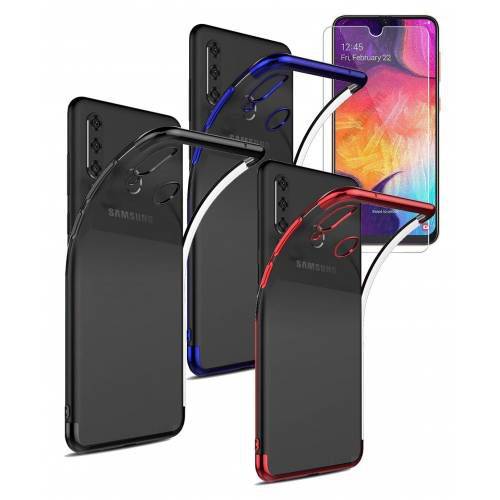 Samsung Galaxy A20s Kılıf Silikon Dört Köşeli Lazer + Temperli Cam Ekran Koruyucu