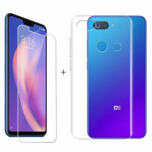 Xiaomi Mi 8 Lite Kılıf Şeffaf Silikon + Kırılmaz Cam