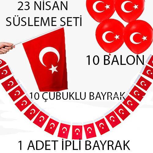 23 NİSAN SÜSLERİ 10 LU SET TÜRK BAYRAĞI – 1 ADET İPLİ BAYRAK 10 ADET BALON