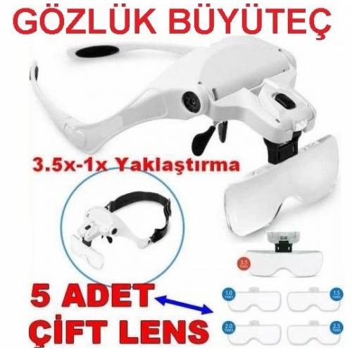BÜYÜTEÇ GÖZLÜK TİPİ LED IŞIKLI SAATÇİ TAMİR Çİ MODEL ÖZEL 5 TANE MERÇEKLİ KAFA ŞAPKA BÜYÜTEC