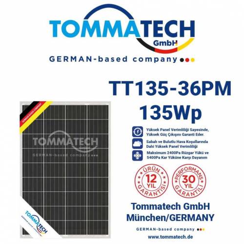 Tommatech 135 Watt Monokristal Solar Güneş Paneli