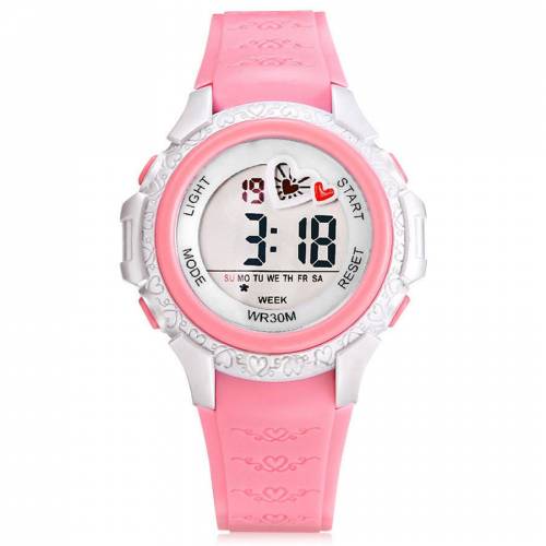 Dijital Pembe Spor Bayan Çocuk Kol Saati Alarm Kronometre Takvim CHR514