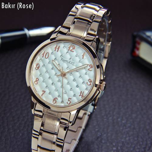 Ferrucci Bayan Kol Saati Metal Çelik Kordon Taşlı Desenli Kadran