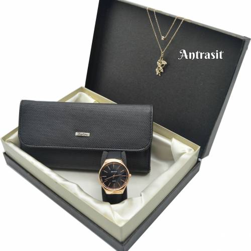 Hediye Seti 03 – Karlino Deri Cüzdan – Spectrum Saat – Kelebek Kolye