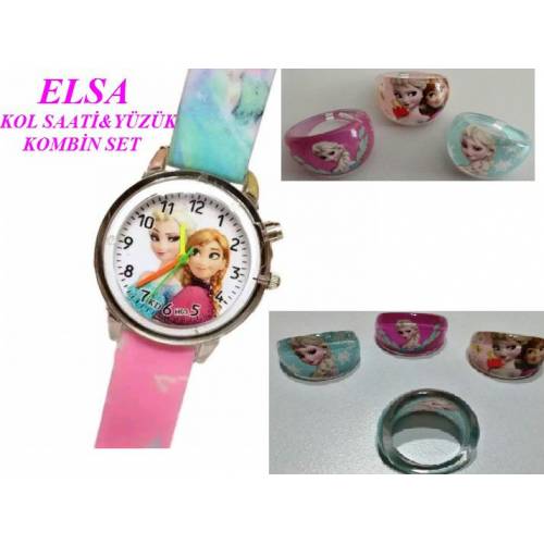 Prenses Anna Ve Elsa Pembe Renk Işıklı Kız Çocuk Kol Saati + Elsa Yüzük (Yedek Pil+Hediye Paketi)