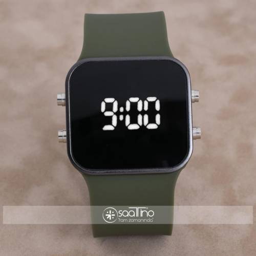SaaTTino Siyah Kasa Yeşil Kordon Led Ekran Unisex Kadın Kol Saati ST-303896