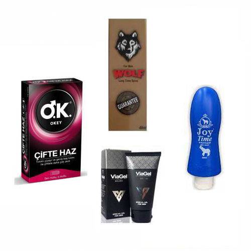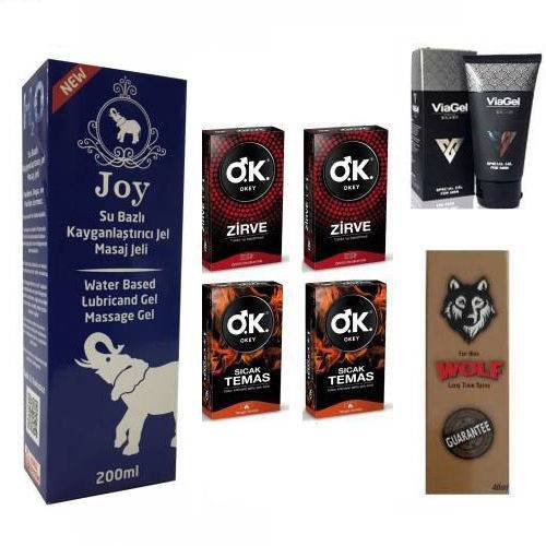OKEY PREZERVATİF+WOLF GECİKTİRİCİ SPREY+JOY ÇİLEKLİ KAYGANLAŞTIRICI+VİAGEL PENİS SERTLEŞTİRİCİ KREM