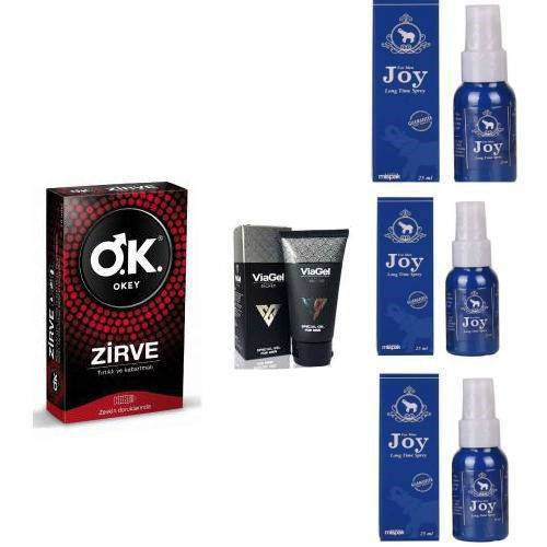 JOY GECİKTİRİCİ SPREY 25 ML X 3+VİAGEL PENİS SERTLEŞTİRİCİ KREM 50 ML+OKEY ZİRVE PREZERVATİF 10 ADET