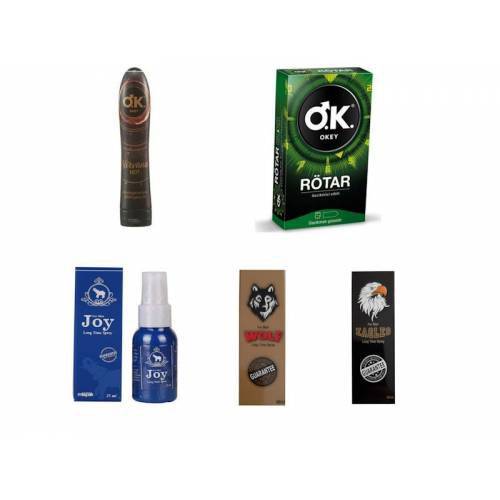 Okey Prezervatif Seti Rötar 10 Lu + Nirvana Hot Jel 100 ML+ Geciktirici Sprey 3 Adet Wolf Eagles Joy