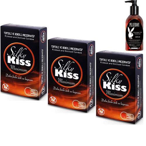 Silky Kiss Maximum Tırtıklı ve Benekli Prezervatif 3 ADET + Masaj Yağı C-1573